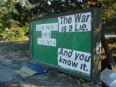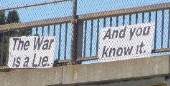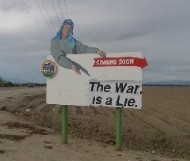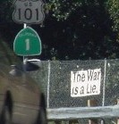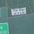 war is a lie put up one sign that said "The War is a Lie." there